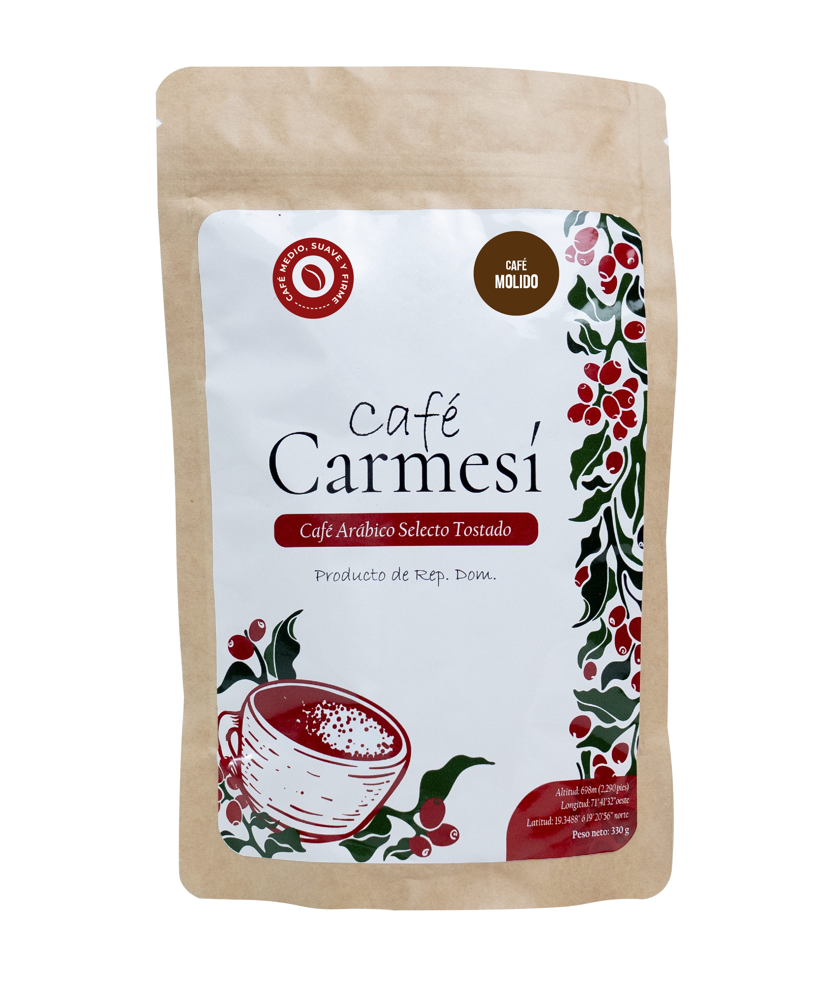 Café Carmesí molido, medio, suave y firme – 330 gramos